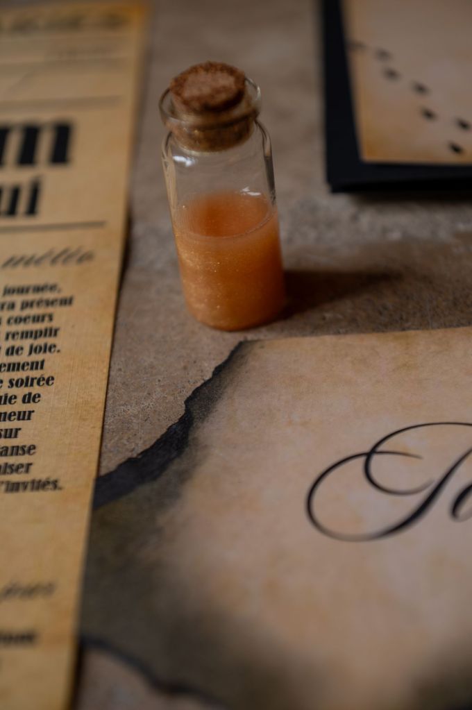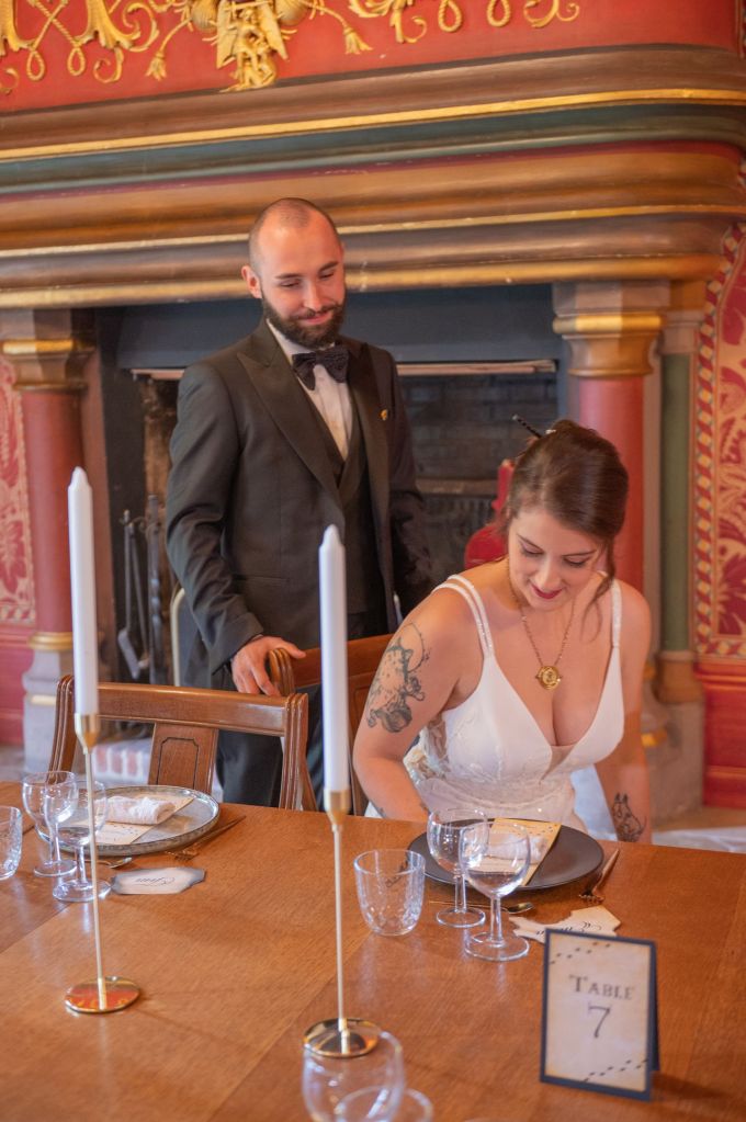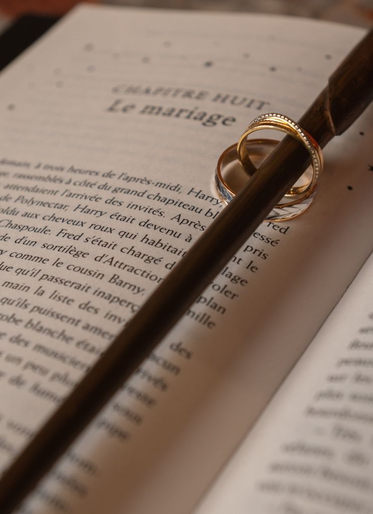 Dès les préparatifs, l’atmosphère se pare d’une aura mystérieuse : les accessoires, la papeterie et les tenues évoquent subtilement le monde des sorciers, tout en conservant une élégance intemporelle.