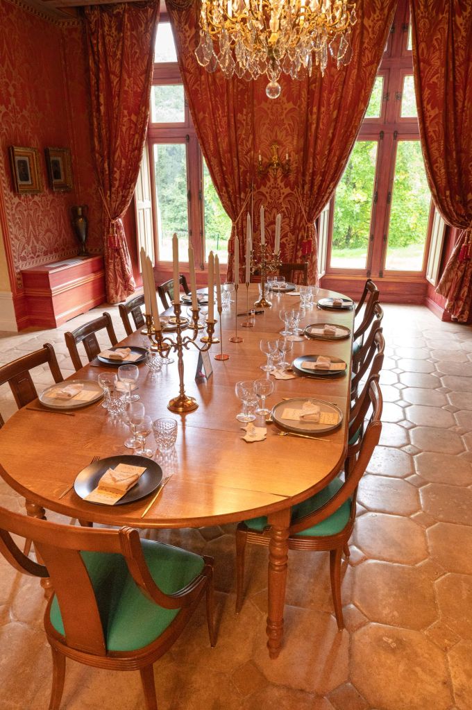 La décoration de la table mêle bougies, chandeliers, baguette, potion et vaisselle délicate. Chaque élément a été soigneusement choisi pour créer une ambiance chaleureuse et immersive, sans tomber dans le déguisement.