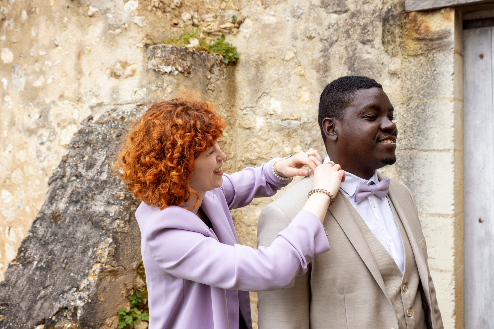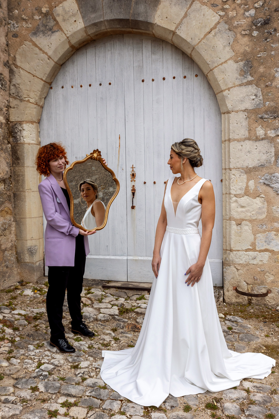 L’objectif : mettre en lumière une cérémonie laïque et les précieux instants de préparation de la mariée, dans une ambiance tendre et raffinée.
