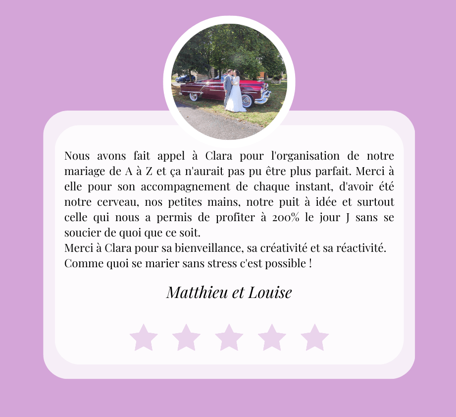 Merci de m’avoir fait confiance pour orchestrer et planifier vos beaux événements.